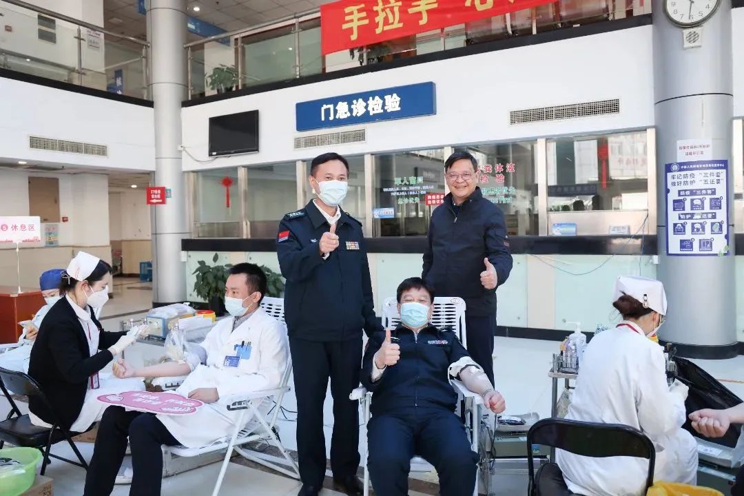 为保障临床用血需求,保证血量库存稳定。3月6日,中心联合上海市血液中心组织开展“手拉手,心连心,无偿献血献爱心”活动,官兵员工代表150余人报名参加,共采集全血32000毫升。上海市血液中心邹峥嵘主任、龚裕春副主任,长宁区卫健委医管科梁楠科长等地方有关部门领导亲临现场指导献血活动。