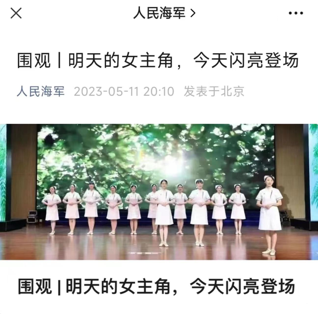 5月11日,人民海军对中心护理部举办的“我们的护士,我们的未来”共绘蓝图活动、“书香润心灵,阅读促成长”读书分享会进行了报道。