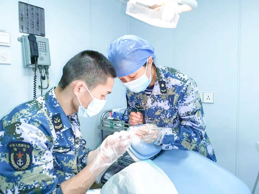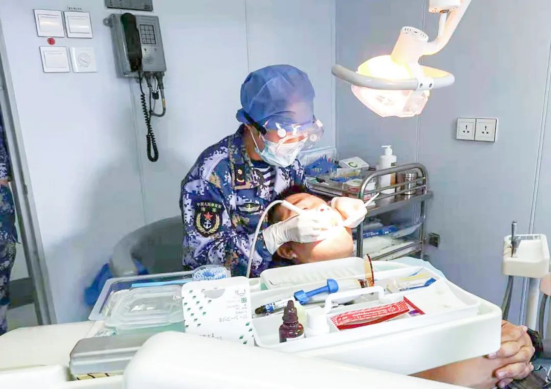 从“一日生活制度”开启舰员生活。我忘了自己是科室主任、一名高职专家,认真将自己的言行规范在制度要求中,使自己的护航生活过得规律充实。医疗问诊是我的主责主业,整个护航期间共诊治530人次口腔疾病,拔除阻生齿50例,龋齿充填修复145例,217颗牙,洁治94例,脱敏、冲洗上药109例,根管治疗20人次;手术3例。